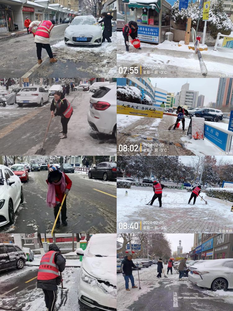 工作人員帶著鐵鍬雪鏟,充分發(fā)揮黨員模范帶頭作用,不畏嚴(yán)寒、沖鋒在前,積極參與除雪融冰、道路清潔。每個(gè)人分區(qū)清掃停車場(chǎng)出入口和路面人行道上的積雪,針對(duì)已經(jīng)結(jié)冰的路面,工作人員使用除冰劑進(jìn)行清除。大家齊心協(xié)力,為停車場(chǎng)及路面車道車輛出入開辟了一條安全暢通路。