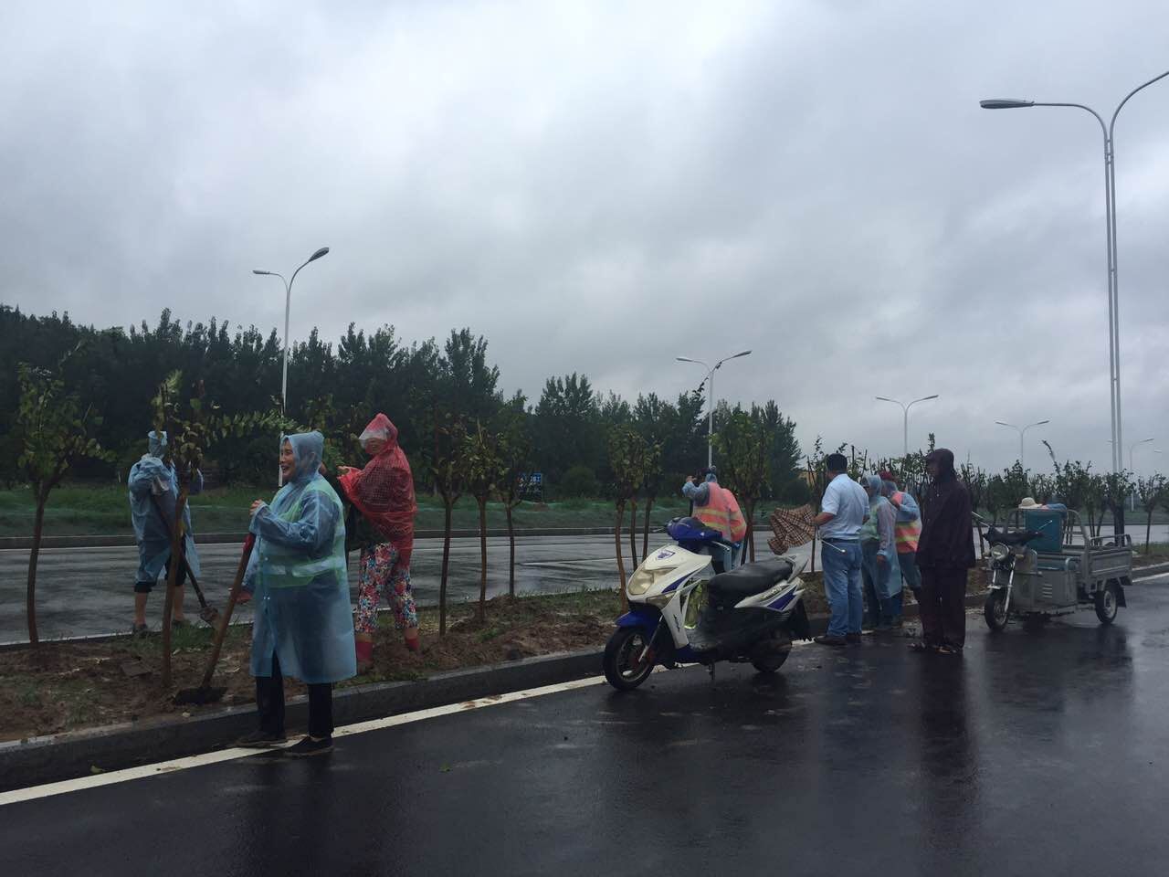 9月10日,公司工程部員工冒著瓢潑大雨在市政府重點工程—梧桐路工程的施工工地上進行綠化施工。據(jù)工程部部長張勇介紹,為了響應(yīng)市政府創(chuàng)建工作,抓住雨天種植綠化樹木的成活率高,調(diào)動公司各部門加班加點,克服雨中施工的困難,為創(chuàng)建工作做出最大努力。